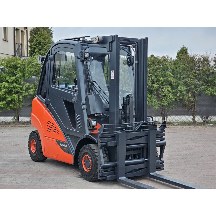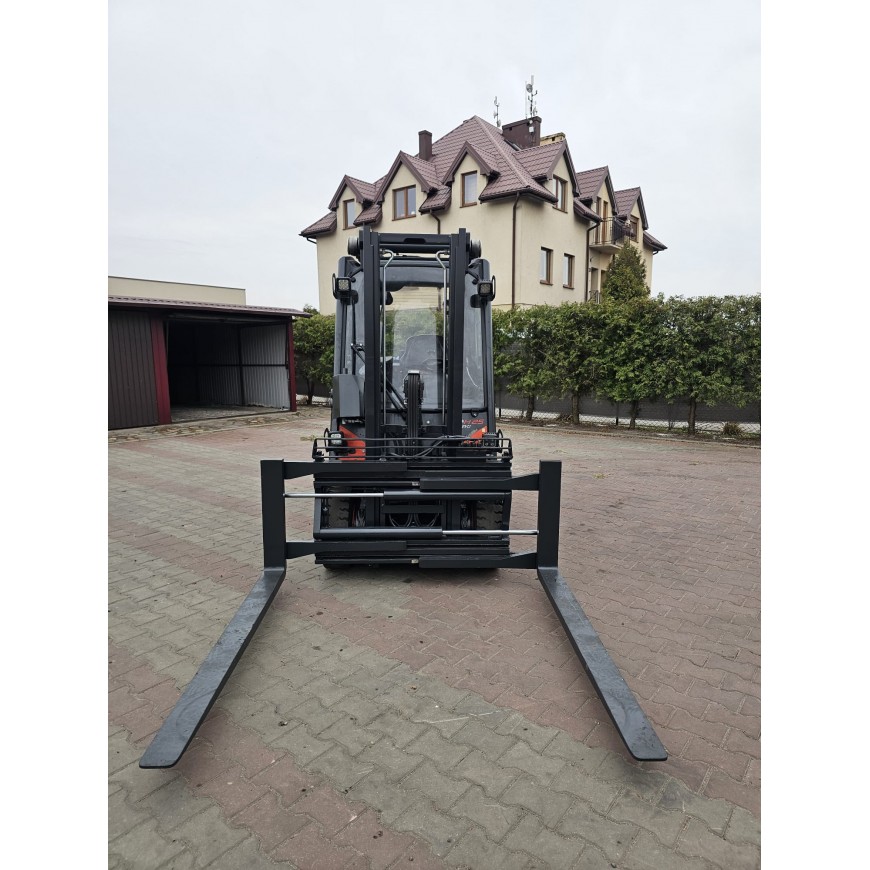 | Wyposażenie | Pozycjoner wideł, Przesuw boczny, Wolny skok wideł, Pełna kabina, Ogrzewanie |